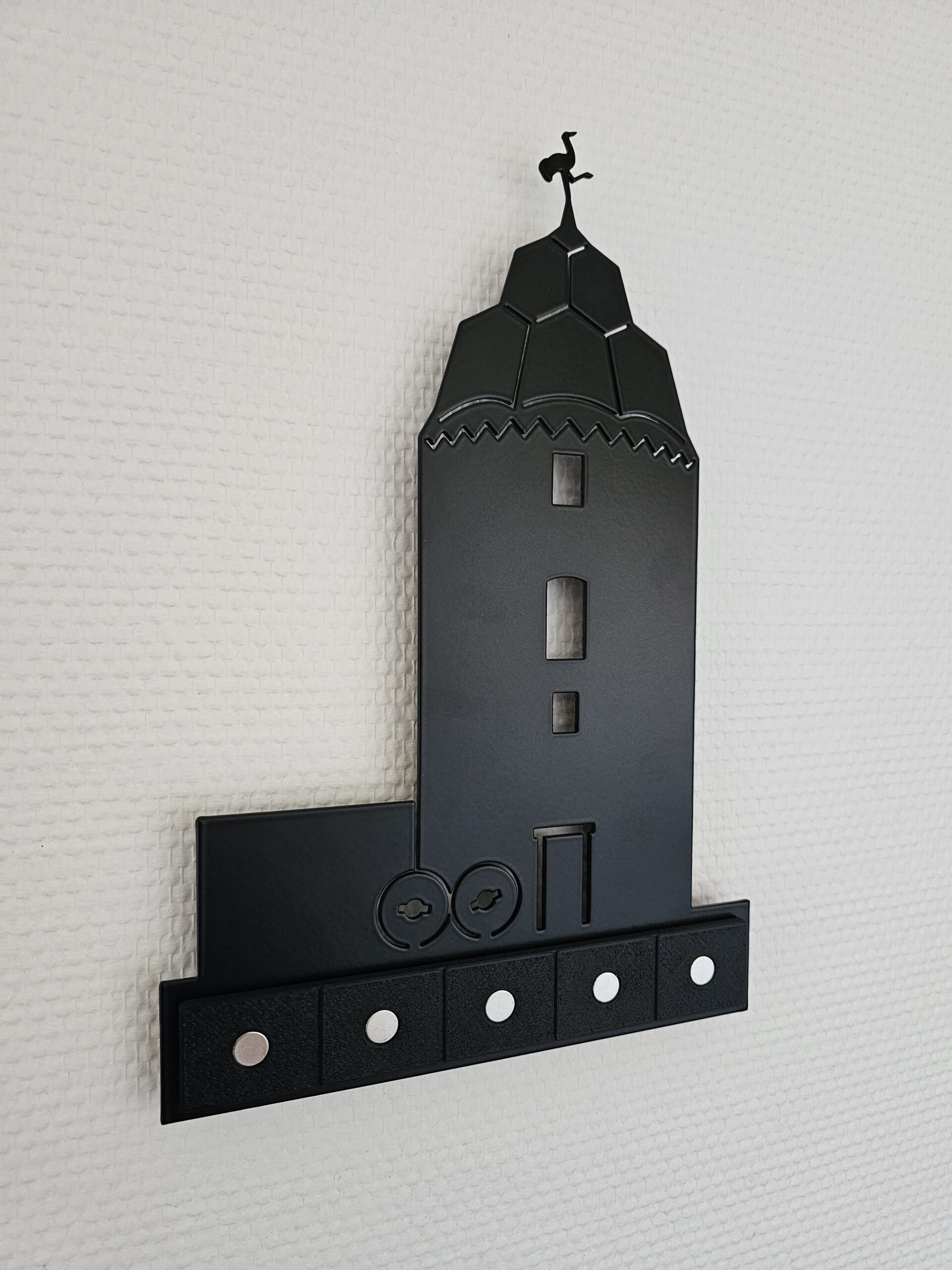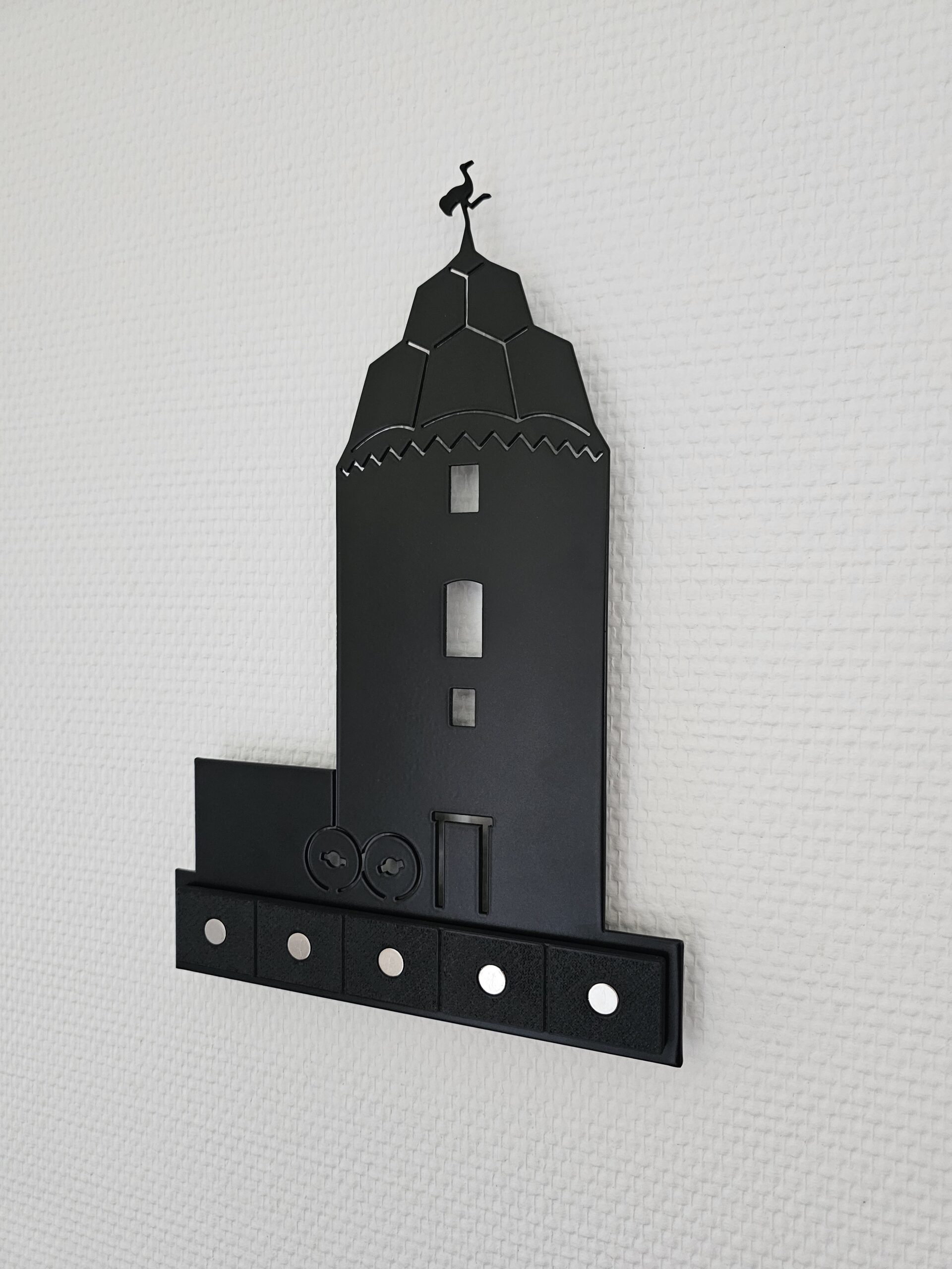 Dieses Motiv greift die charakteristische Silhouette des Mühlturms auf und übersetzt sie in ein klares, reduziertes Wanddesign mit regionalem Charakter. Die minimalistische Linienführung bringt die historische Form modern zur Geltung und verbindet Vergangenheit mit zeitlosem Design.
